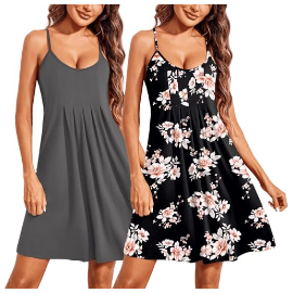 Ekouaer 2 Pack Nightgowns for Women Sleeveless Sleepwear Racerback Tank Sleepshirt Pleated ...