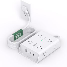 10FT Flat Plug Extension Cord with Multiple Outlets, Surge Protector Power Strip 10 ft Cor ...