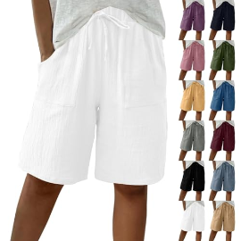 Baggy Shorts Women,Linen Bermuda Shorts For Women Knee Length Women's Gauze Baggy Short Wi ...