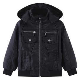 POZAMA Boys Faux Leather Biker Jacket Motorcycle Bomber Style Jacket with Zip Closure for ...
