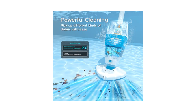 Upgraded Powerful Suction: Winny 100P pool vacuum cleaner is equipped with high-powered motor and big suction port at bottom, providing strong suction at a flow rate of up to 1548 gallons per hour. It effectively captures various debris, leaves, twigs, sand, and small stones.