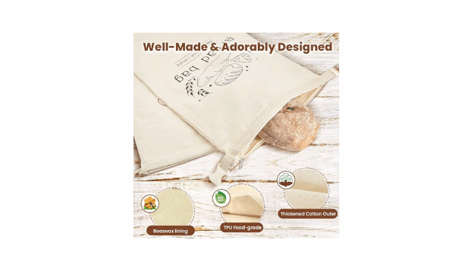 Fresh Longer: Our sourdough bread bags feature either a beeswax lining or a TPU lining with drawstring—both create a breathable barrier that locks in moisture while staying airy. Once bread is fully cooled, place it in the bread bag and freeze (not refrigerate) to stay fresh up to 3 months. At room temp: 2–3 days