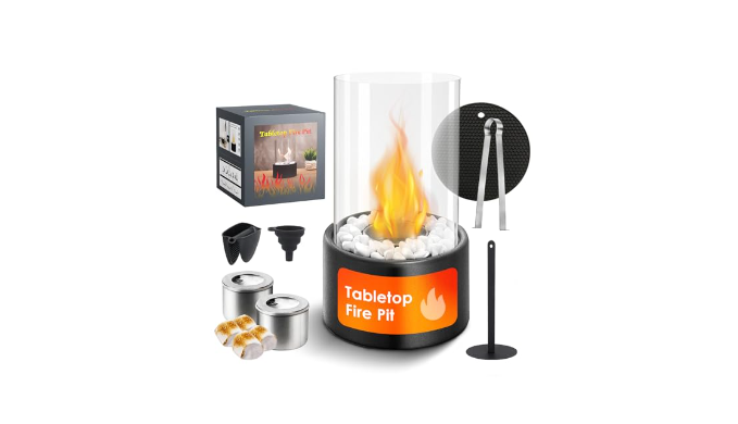 【Simple and Easy To Use】 This indoor fireplace is equipped with a funnel for easy fuel refilling, easy to assemble and ready to use. The table top fire pit is medium sized and more portable. The desktop fireplace burns for a long time without smoke. The portable fireplace components are windshield sleeve, funnel, fire cover, clamp, silicone gloves, practical enough to make it a user\'s choice for indoor and outdoor fire pit table top.