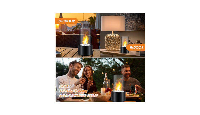 ❤【Dreamy Fire Pit Indoor 】 This table fire pit tabletop indoor has high-transparency glass cylinders that reflect a luxurious touch with dancing fireworks, and tabletop fire pit indoor can bring warmth and a dreamy glow to your room. More people are choosing table fire pit tabletop as the perfect combination to create a relaxing evening and romantic ambiance for patio bonfires, dinner parties and baths.