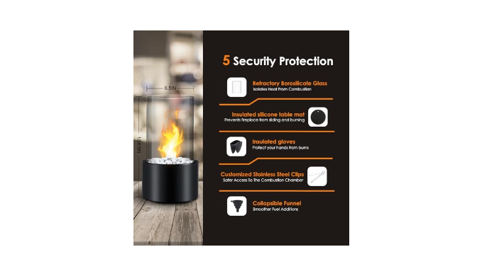 【5 Safety Guards】 The glass barrel of this table fire pit tabletop is made of high borosilicate. The silicone table mat of tabletop firepit is non-slip and insulated, and insulated gloves to protect your hands from burns. The stainless steel clips of mini indoor fireplace for safer access to the combustion chamber and a collapsible funnel for easy fuel addition. All of the above allows for maximum safety for indoor tabletop fire pit.