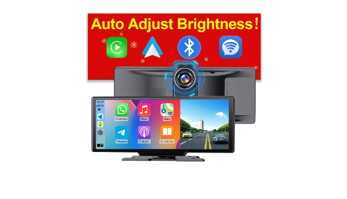 【4K Dashcam/Backup Camera】Upgrade to a portable Apple CarPlay with a 4K dashcam, delivering exceptional recording quality in both day and night. Utilize in-car WiFi connectivity to effortlessly view and replay recorded videos. This device is compatible with a backup camera, allowing for easy switching to the rearview when reversing and addressing blind spots. Please note: The backup camera is not included; refer to ASIN: BOCMCHN3XN for more details.