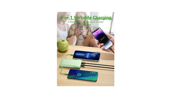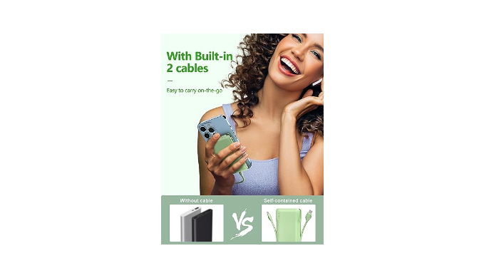 Versatile Recharging: Tiny body but multiple functional! This battery bank supports three kinds of fast output and one USB-C input as follow shows: USB-A output port; USB-C output/input port; two cables compatible with smartphones and Type-C phones; The various charging options at your fingertips! This charger supports pass-through charging, allowing you to use your device while it\'s plugged in and recharging.It can charge multiple devices simultaneously