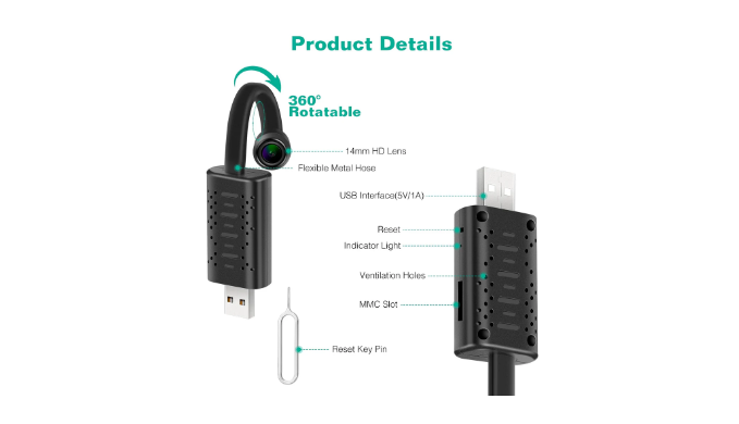 - Plug & Play: Plug the camera into the power bank or socket or power plug with USB interface. Download the app and operate as the guide of our User Manual.