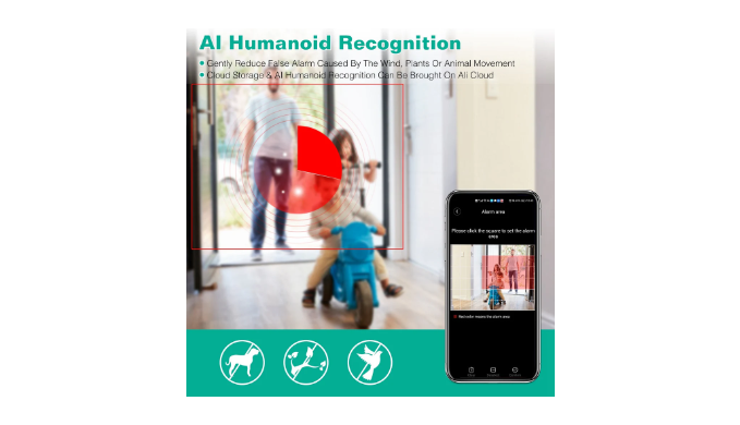 - AI Human Detection: Only alarm when there is human activity, making it more precise! (Reduce the nuisance alarms caused by the wind, glass or animal, AI Human Detection service are provided and charged by third party)