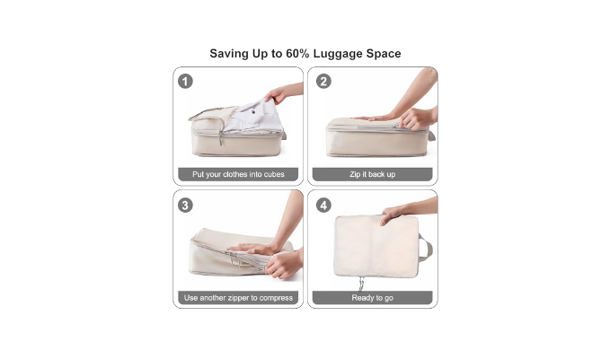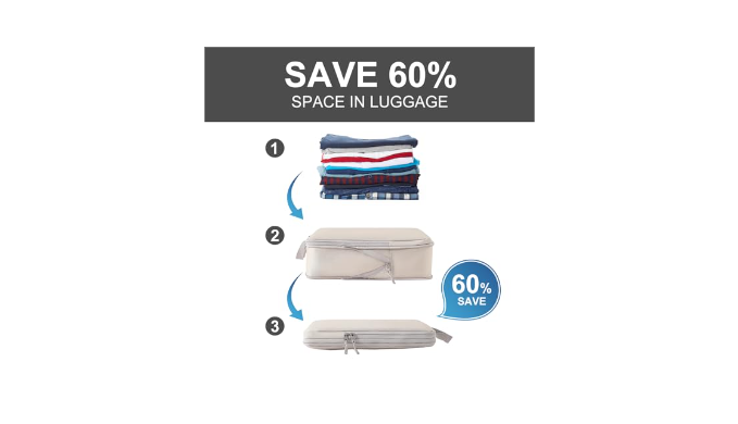 SAVE OF 60% LUGGAGE SPACE: The double zippers of the Packing Cubes provide excellent compression, saving up to 60% of space, allowing you pack more items and keep your luggage organized. The travel cubes fits perfectly in different size suitcase,carry ons, luggage,backpacks, etc.