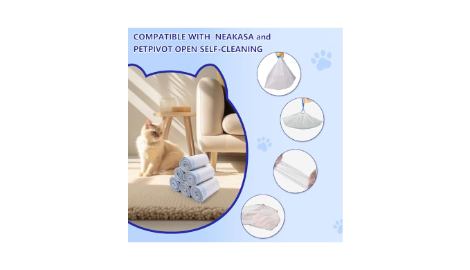 Hassle-Free Cleanup: Our litter box bags, combined with the Neakasa M1\'s innovative \"Pull and Wrap\" system, make cleanup easy and hygienic. Pull the sturdy drawstring, and the litter is securely wrapped in an odor-resistant bag - no direct contact, no mess, and no lingering odors. Using our litter bags seals quickly and eliminates the need for manual scooping, ensuring a fresh, clean environment for your cat every time
