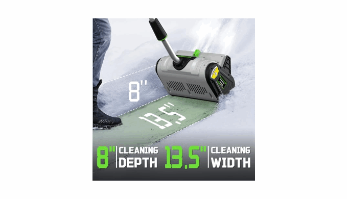 13.5” Width & Quiet Operation – Perfect for All Small Spaces, With a 13.5-inch clearing width and 8-inch optimal depth, this electric snow shovel effortlessly handles driveways, steps, patios, decks, sidewalks, and walkways. Unlike noisy gas-powered tools, it operates quietly, allowing you to clear snow early morning or late at night without disturbing neighbors. A must-have for home snow removal.