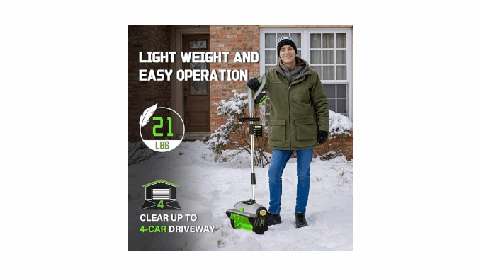 Lightweight & Powerful, Effortless Snow Throwing – Weighing just 21 lbs, the SONTHIOW Cordless Snow Shovel is easy to handle for all users, even during long sessions. Powered by a high-performance motor and a 4.0 Ah rechargeable lithium-ion battery, it throws snow up to 25 feet, clearing your space rapidly. With a 20-minute max runtime, it’s ideal for moderate snowfalls, eliminating the need for cords or heavy lifting.