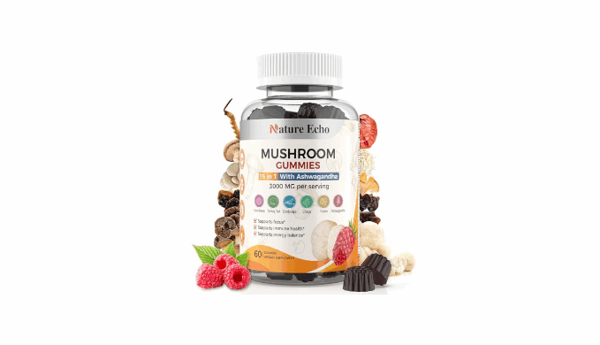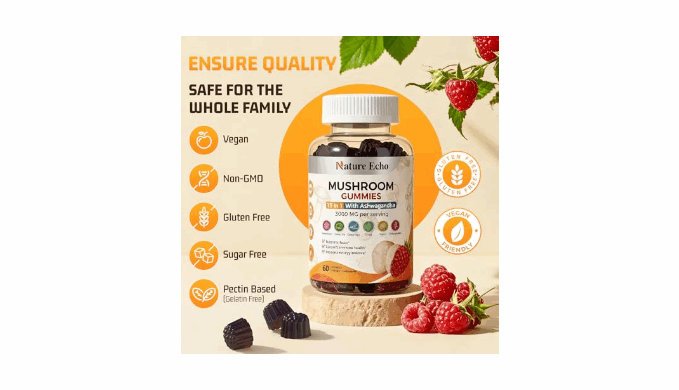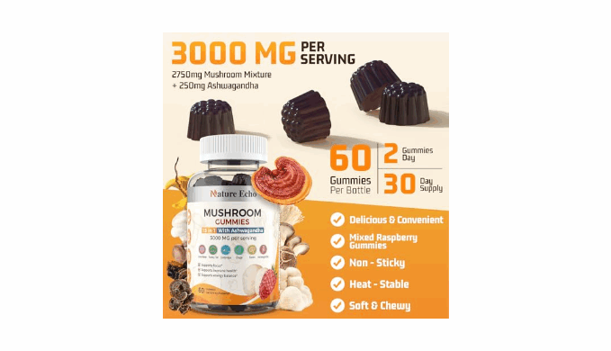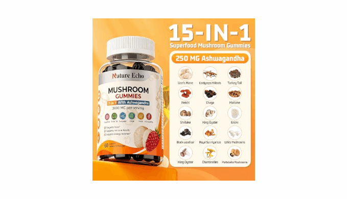 【15 Mushrooms Blend】Nature Echo\'s mushroom gummies includes: Lion\'s Mane, Cordyceps Militaris, Turkey Tail, Reishi, Chaga, Maitake, Shiitake, King Oyster, Enoki, Black wood ear, Royal Sun Agaricus, White mushrooms, Oyster, Chanterelles, Portobello mushrooms, and Ashwagandha mushrooms; enhances your cognitive function, strengthens memory, and improves your concentration from the inside out