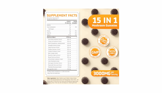 【Trustworthy Quality】Mushroom supplements are made with our love for your family\'s health. They are free of additives, artificial colors, and are sugar free, non-GMO, gluten-free, and vegan. Our gummies are manufactured in a cGMP-compliant factory and undergo third-party testing to ensure quality