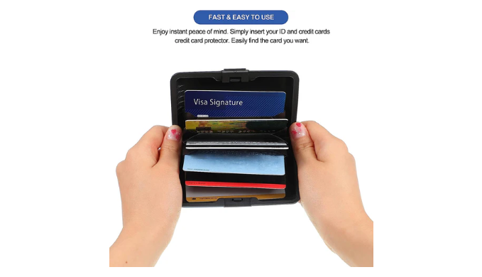 - RFID blocking: the aluminum RFID blocking credit card holder can be applied to interfere with RFID/ NFC signals, preventing your personal or private information from unauthorized scanning and malicious theft, which is a safe and reliable method to safeguard your property and information security