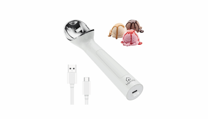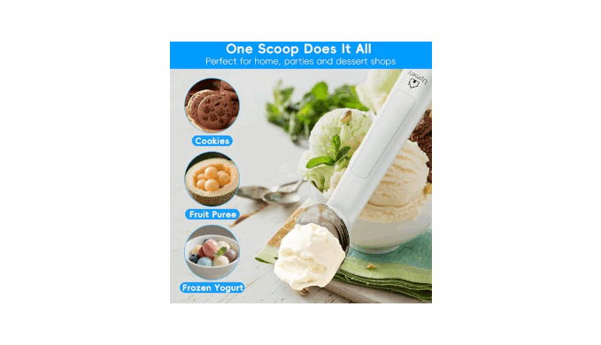 What You Got: Includes a heated ice cream scooper, a type c charging cable and manual. The scoop is perfect for ice cream, frozen yogurt, gelato, and more, this is the must-have kitchen gadget for dessert lovers. Whether for yourself or as a gift, the rechargeable ice cream scoop transforms every scoop into a satisfying experience.