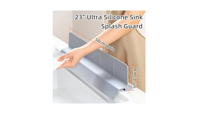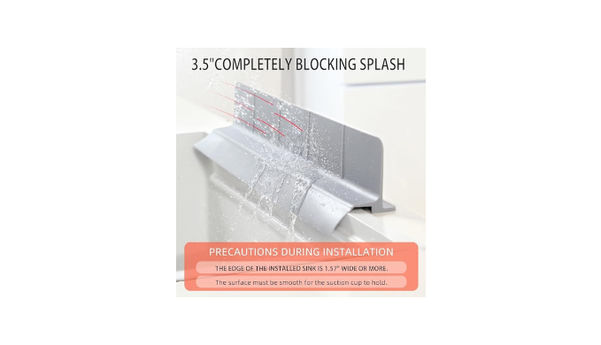 [Latest Upgraded]Attention: The front edge of the sink should be at least 1.57 inches wide and is not suitable for circular, curved or angular sinks.This 23 \"x 3.9\" x 3.5 \" kitchen sink splash guard is the latest upgrade for 2025/12TH. Using high-quality silicone material, it provides powerful splash prevention, drainage, and water blocking functions.