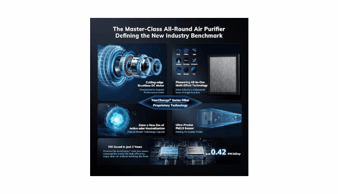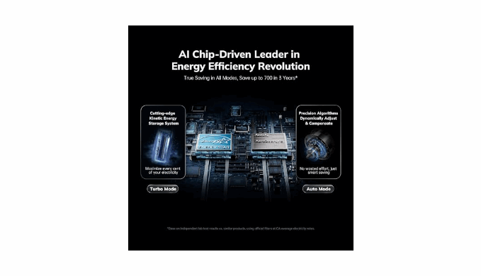 【AI-Driven Air Quality Monitor & Auto Mode】Equipped with ultra-precise air quality sensor that requires no cleaning or maintenance. Powered by an AI chip with multi-parameter fusion, advanced algorithms, and automatic calibration, it delivers 35% higher accuracy and 60% faster response time than standard sensors. The system displays air quality in real time, and in Auto Mode, it intelligently adjusts fan speed based on current conditions to maintain clean air while optimizing energy efficiency