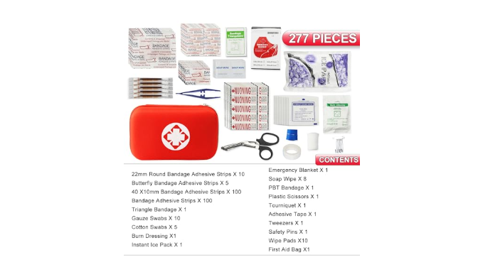 With its portable and compact design, the emergency kit is easy to store in your car, backpack, or suitcase. Emergency tool contains 277 first aid essential items, including adhesive bandages, cotton swabs, gauze pads, gauze, small tapes, ice pack, emergency blankets, and much more. First aid kit equipped with essential supplies for minor injuries and emergencies