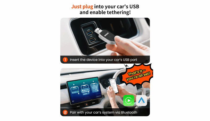 - 【OTA Updates — 24/7 Support】GETPAIRR keeps your tech fresh and your drive worry-free. With OTA (over-the-air) firmware updates, your carplay wireless adapter stays optimized with the latest features. Plus, you’ll enjoy a full 12-month warranty and 24/7 customer support. Got a question? We’ve got your back — quick, friendly help whenever you need it.