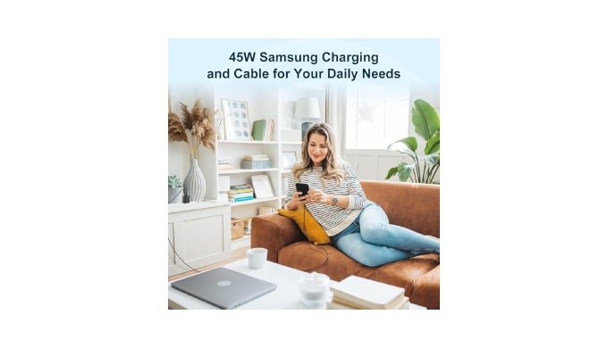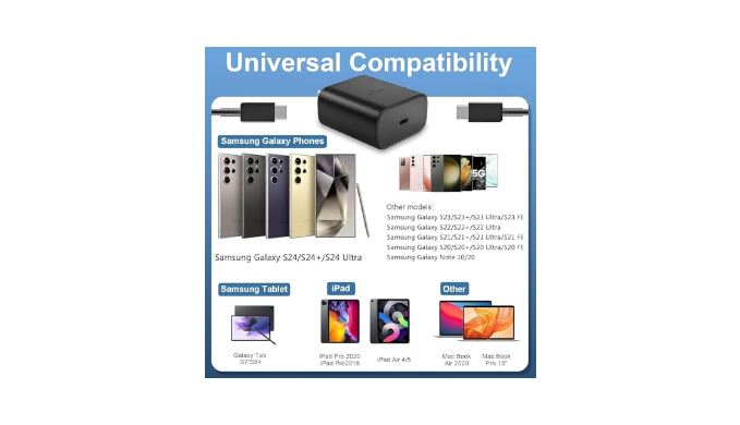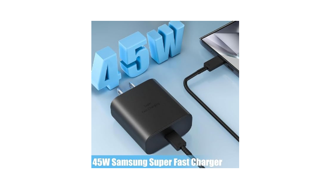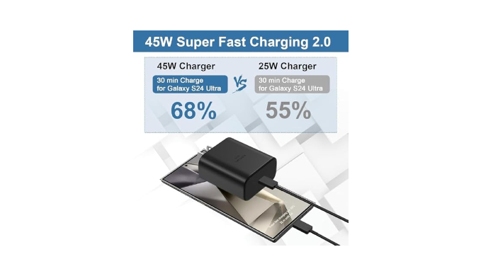 【45W Super Fast Charger】: 45W type c super fast charger and cable support multiple fast charging technologies, including Samsung Galaxy super fast charging, PD 3.0, PPS, and QC 4.0. It provides fast-charging up to 45W output, super-fast charging for Samsung Galaxy S24 Ultra/S24 Plus/S24+/S23 Ultra/S23/S23+/S22/S22Ultra/S22+/S22Plus/S21/S21Ultra/S21+/Note20/Note20Ultra/Note10+. USB C super-fast charger can charge your phone to 70% in just half an hour, 8 times as fast as a standard USB C wall charger.