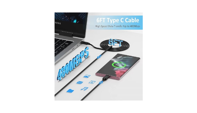 【 60W C Fast Charger Cable】: The 45W super fast type c charger is equipped with an extra 6 FT Type C to C cable, fast charging, The power output is up to 2.7 Amp and 100-240 volt input it also has data transfer feature for convenient usage, up to 480 Mbps data transfer speed.