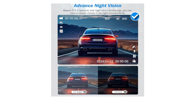 【4K HD Dash Camera for Cars】Our CA316 car dash cam provides a true 2560*1440P resolution front cam, which can seamlessly record up to 4K HD video, ensuring crystal-clear visibility of license plates and road signs. And The rear camera with its convenient 20ft extension cable makes it is suitable for various vehicles such as cars, SUVs, jeeps, and trucks (Non-App Sync)