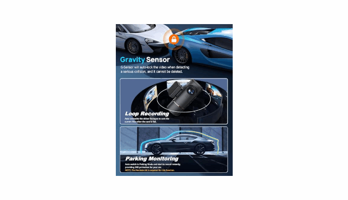 【Smart Loop Recording & File Protection】Customize recording cycles with 3 time-slot options. When storage fills, our advanced overwrite system prioritizes keeping your newest drives while safeguarding locked files. Accident Detection Mode automatically protects collision footage from deletion – critical evidence stays secure.