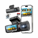 【3 Channel WiFi Dash Cam】With a G-sensor, 4 IR lights, and WDR technology, better night vision is provided by the 4K dash camera. Uses f/2.0 wide aperture with a total of 6 layers of optical lens technology, enabling the car camera to show good color accuracy and clearly capture important details day or night.