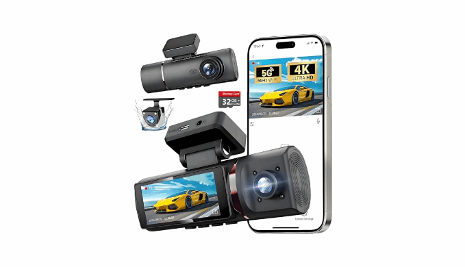 【Dash Cam Front and Rear】Enjoy fast video download speeds of up to 8MB/s, and the built-in 5GHz WiFi gives you fast access, enabling instant access to recorded content and driving directions on your smartphone. Support simultaneous video playback in front of/inside/behind the car and easily share your travel experience with family, friends and social media with a single click.