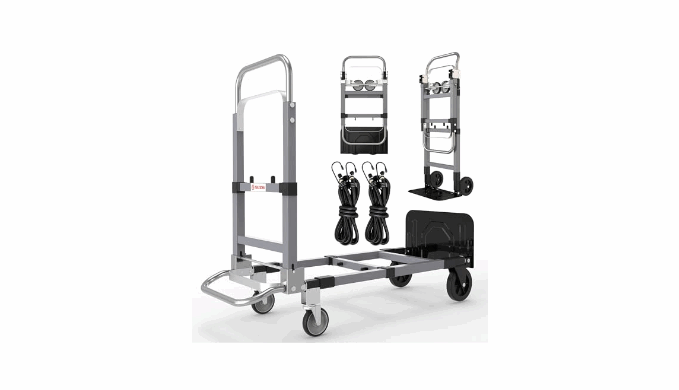 【EASY TO SWITCH AND USE】You will get a heavy duty two wheel hand truck and four wheel platform cart all in one!Converts to four and two wheeled carts in seconds without pins or tools.The folded size is 34.5×15.5×3,It\'s durable and easy to fold so you can take it anywhere.After use you can store in car trunk,under a bed,in a closet,storage rooms easily.It is designed for moving heavy objects.