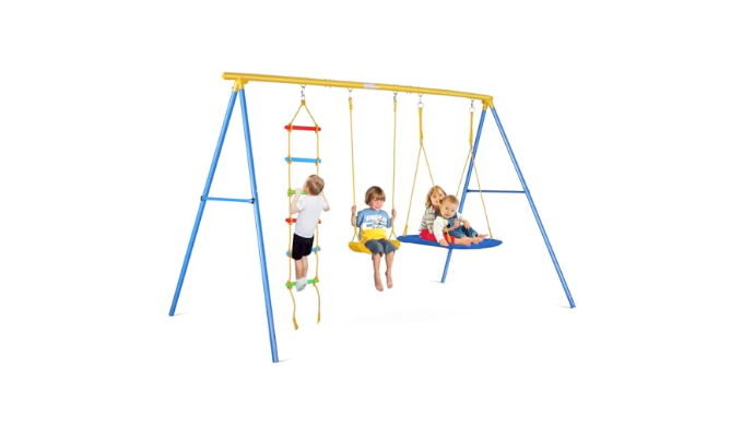 [PERFECT GIFT FOR KIDS] - This swing set is a great gift for year-round use, whether it\'s for a child\'s birthday, holiday, or purely for celebration and reward. It allows kids to play with their friends in the backyard away from indoor electronics, unleashing their natural energy and creating great memories and fun times for them.