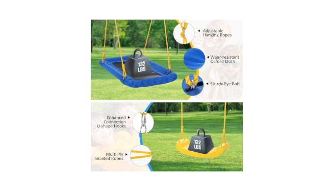 [Durable and reliable materials] - 33-inch bird\'s nest swing is made of high-quality Oxford cloth, spacious, weather-resistant, and tear-resistant. The U-shaped swing seat is made of durable PE material, which is impact-resistant and resistant to deformation. The high-quality nylon rope is even stronger and more durable, avoiding unnecessary breakage and injury.