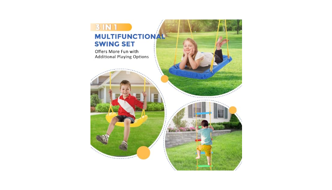 [Combo metal swing set] - 2024 version of the swing set includes 1 X 33inch saucer swing, 1 X belt swing, 1 X climbing ladder. Children can exercise physical coordination abilities, and motor skills and develop a sense of balance by playing with this backyard playground set, giving them more options for fun.