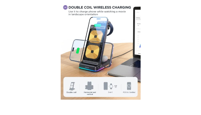 [CHARGE INSTANTLY] Joyroom wireless charger stand has built-in dual coils. In traditional induction, you have to have sort of perfectly matched coils. They must be very close to each other and they have to be in perfect alignment. But with two coils, you don\'t need that. Just toss our phone on the charging pad to charge instantly. Whether you\'re watching a movie horizontally or having a video conference vertically, your phone can easily align with the coil and get stable charging input from the charger
