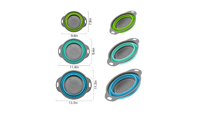 Colorful designs in different sizes---The product has three different colors and sizes, namely blue (large), lake blue (medium), green (small), rich color matching, can make your kitchen full of vitality . Choose the size as needed, the appropriate size saves more water waste.