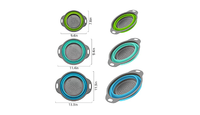 Best Colander Set for the Kitchen --- When you cook, the collapsible colander will help you filter and rinse potatoes, broccoli, carrots, spinach and other vegetable and fruit impurities, making cleaning faster and easier. Built to last, our pasta strainer withstands the rigors of daily kitchen use, ensuring you have a trusty helper for years to come.