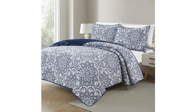 - Bibb Home 3 Piece Printed Reversible Floral Quilt Set: Timeless Elegance: Discover the charm of our quilt for bed with subtle diamond-patterned stitching. Impeccably crafted, it\'s a signature detail that sets our bedding apart.