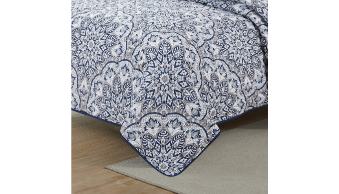Show off sunny style with a reversible quilt set by Bibb Home. The softness of this quilt and its matching shams provide a restful place to count a few sheep, and a reversible design highlights a solid color that folds over and contrasts a print. The reversible quilt set is lightweight, making it perfect for summer use or as a winter topper with blankets underneath.