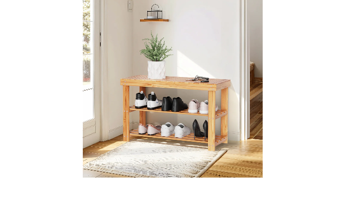 Upgrade your home with our elegant 3-layer Bamboo Shoe Storage Bench, crafted from eco-friendly, high-quality bamboo for a durable, sturdy, and stylish solution. This multifunctional shoe rack bench combines practicality with elegance, fitting seamlessly into modern, minimalist, or rustic decor. With a weight capacity of up to 220 pounds, it provides both a comfortable seating option and efficient shoe organization.