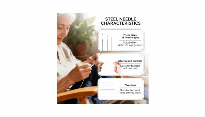 PORTABLE & CONVENIENT: The compact design of this big eye steel needle set makes it perfect for traveling and home use. Whether you\'re on-the-go or crafting at home, this kit is the ultimate companion!