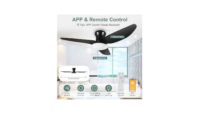 ❃【Remote Control】: Our low profile ceiling fan with light offers seamless wireless control through both a remote and a dedicated mobile app. Whether you\'re lounging on the couch or getting ready for bed, you can effortlessly adjust the fan and light settings from anywhere in the room.