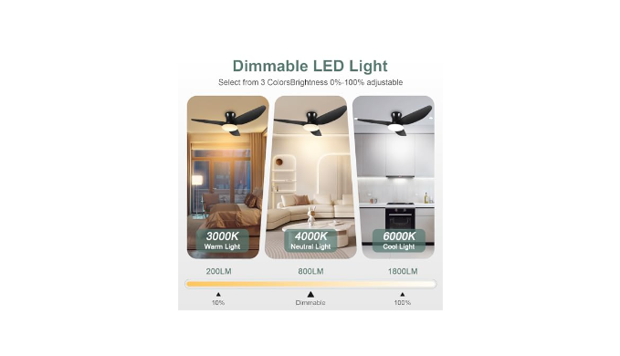 ❃【Intelligent Design】: With its intelligent design, this ceiling fan allows you to tailor the ambiance to your preferences. Choose from three color temperatures (3000K, 4000K, 6000K) and adjust brightness levels from 10% to 100%. Additionally, the convenient timer function lets you schedule operation for 1, 2, or 4 hours, catering to your specific needs and enhancing convenience.