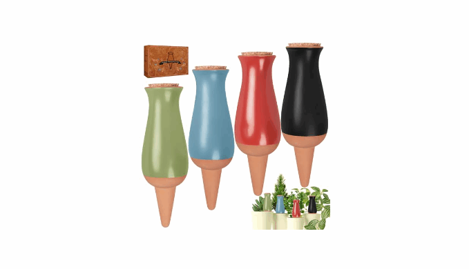 UNIQUE DESIGN: Made of clay with 4 colors (green, blue, red, black) to better decorate plant pots. The watering devices can irrigate an area up to 3 inches in diameter. Thickened tip enhances the stability of the devices and makes it less easily to break