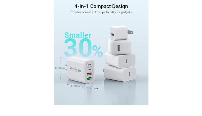 Universal Compatibility Wall Plug:The USB C Charger plug due to the special 4-port,the USB charger is compatible with almost all electronic devices,charging adapter for iPhone 15/15 Pro /15 Pro Max/14/14 Pro/14 Pro Max/13/13 Mini/13 Pro Max/12/12 Pro Max/12 Pro Max/12 Mini/SE 2020/11/11 Pro/11 Pro Max/XR/XS/X/8/7,iPad Air/Pro/Mini,Samsung Galaxy S22/S21/S20/S10/S9/S8/A12/A13/A22/A32/A52/A53/A71/Note 20 10,Tablets,LG,Motorola,Google Pixel and other digital devices compatible