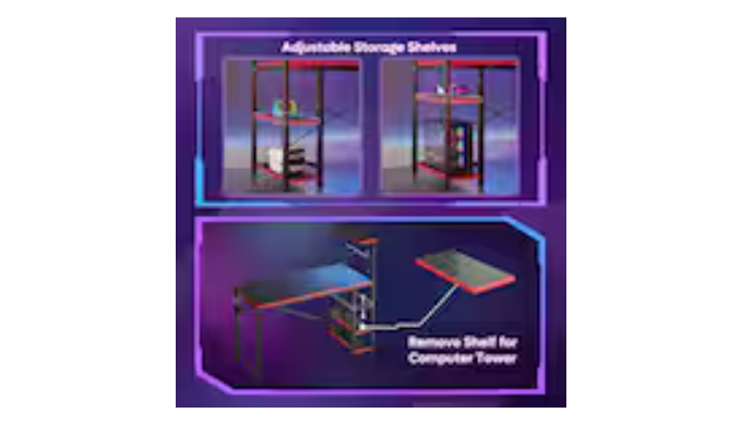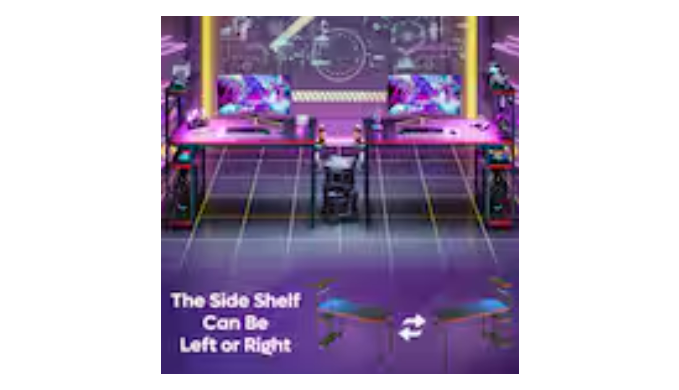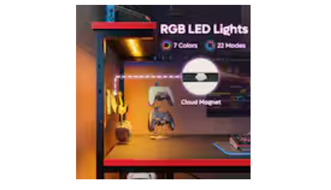 - Gaming Desk with LED Lights: Whether you’re in the heat of a battle or simply working on a project, the RGB LED light strip with 7 color moods and 22-dynamic modes enhances your experience. Whether you are gaming, live streaming, or daily working, it adds a vibrant atmosphere to your room, enhancing your overall experience