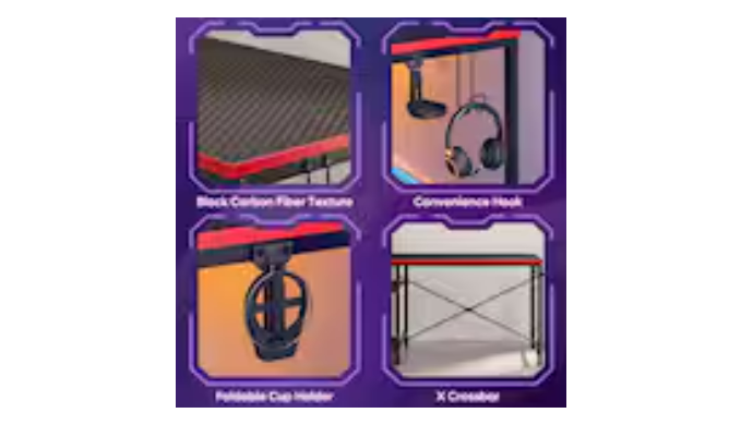 - Convenient Features for Gamers: The foldable cup holder and headphone hook help maximize desk space, keep your gaming area tidy and your essentials within reach no more searching for your headphones or knocking over your drink in the heat of the moment