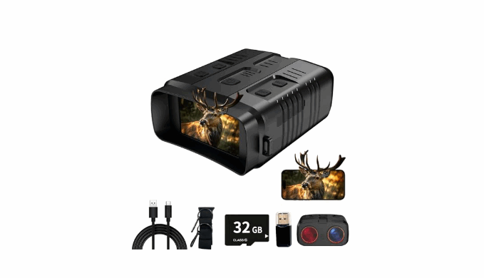 What You Get: 1 x Night Vision Binoculars, 1 x 32GB Memory Card, 1 x USB Data Cable, 1 x Hanging Shoulder Strap, 1 x User Manual,1 x Card Reader,1x Bag, 1x Cleaning Cloth
