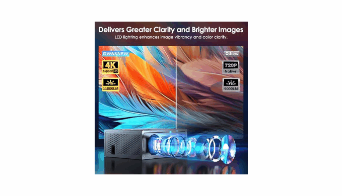 Exceptional 4K Image Clarity :The 4K projector supports 4K resolution video, which provides clear and detailed images without losing any details. With a staggering brightness of up to 11,000 lumens, the video projector ensures vibrant and sharp display quality, even in well-lit surroundings. Its outstanding contrast ratio of 10,000:1 guarantees deep, rich blacks and brilliant whites, immersing viewers in a truly captivating visual experience.